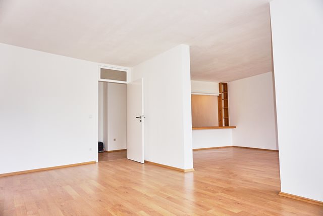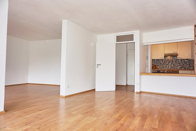 Sehr großzügiger Grundriss, beide Zimmer sind durch einen großzügigen Durchgang verbunden, jedoch auch einzeln von der Diele aus zu betreten, Einbauküche mit praktischer Durchreiche zum Wohnzimmer, hell gestaltetes modernes Bad mit Wanne und eingebautem Waschtisch, zwei Balkone zum ruhigen Innenhof.